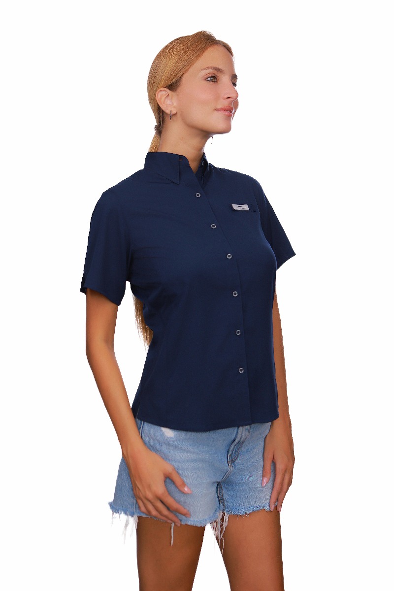 Blusa Tipo Pescador Manga Corta para Mujer Fort Lauder, súper ligera ideal para usar al aire libre, camping, playa, pesca, outdoor, trabajo, como uniforme o como la prefieras.
