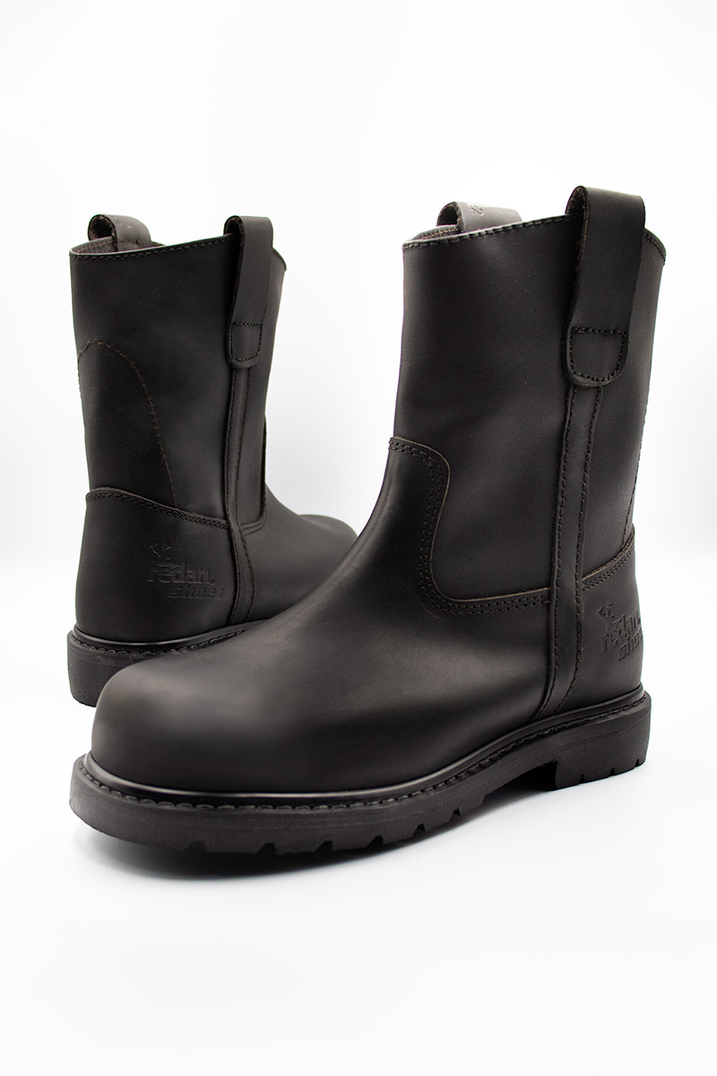 Bota industrial unisex, resistencia al uso rudo, resistente a aceites, solventes, suela elastómerica antiderrapante, casquillo metálico.