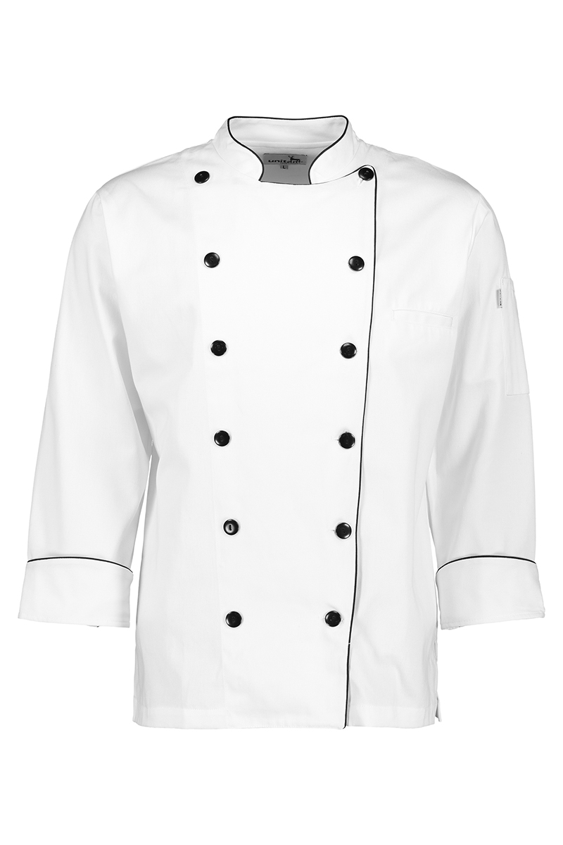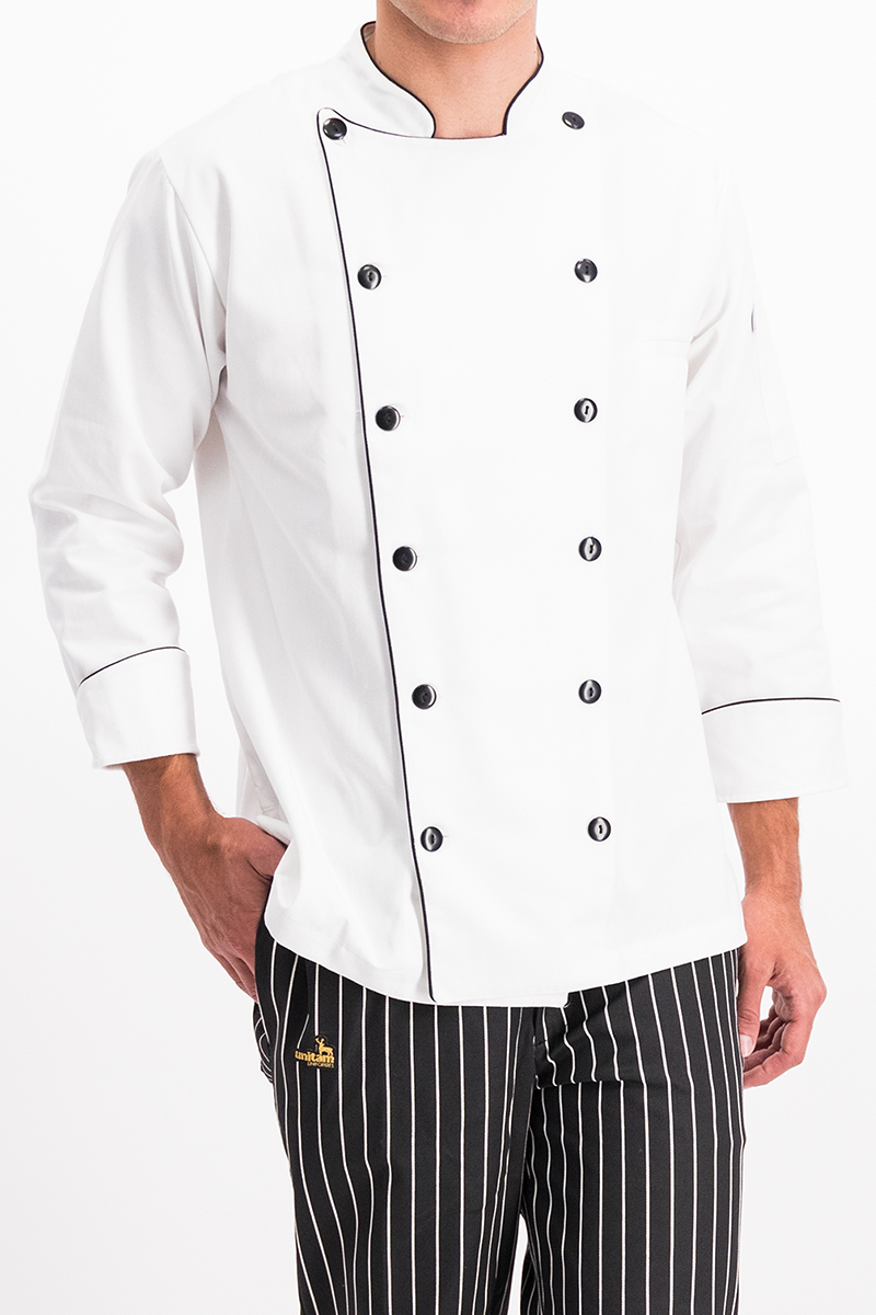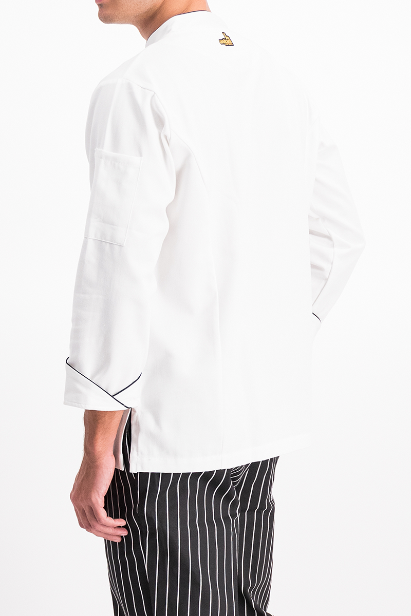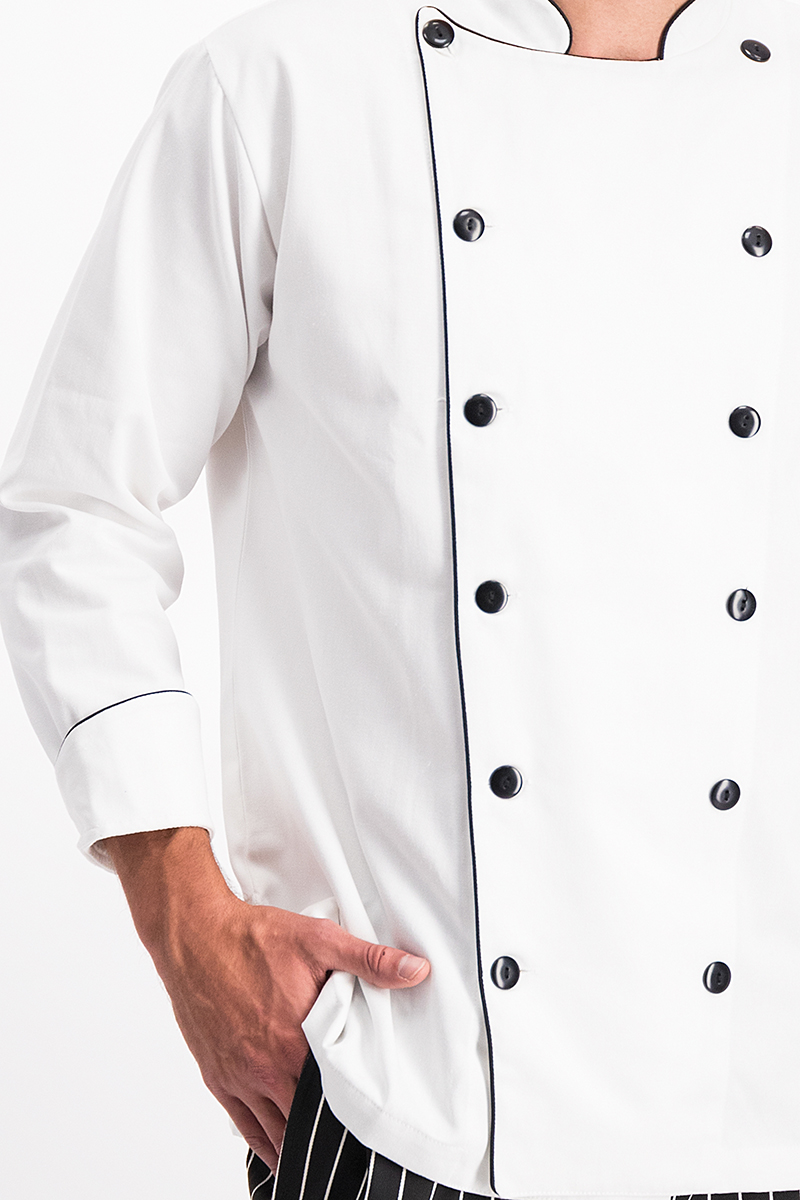La filipina de chef con vivos negros añade un toque estético, elegante, resalta el diseño y proporciona un contraste visual agradable.