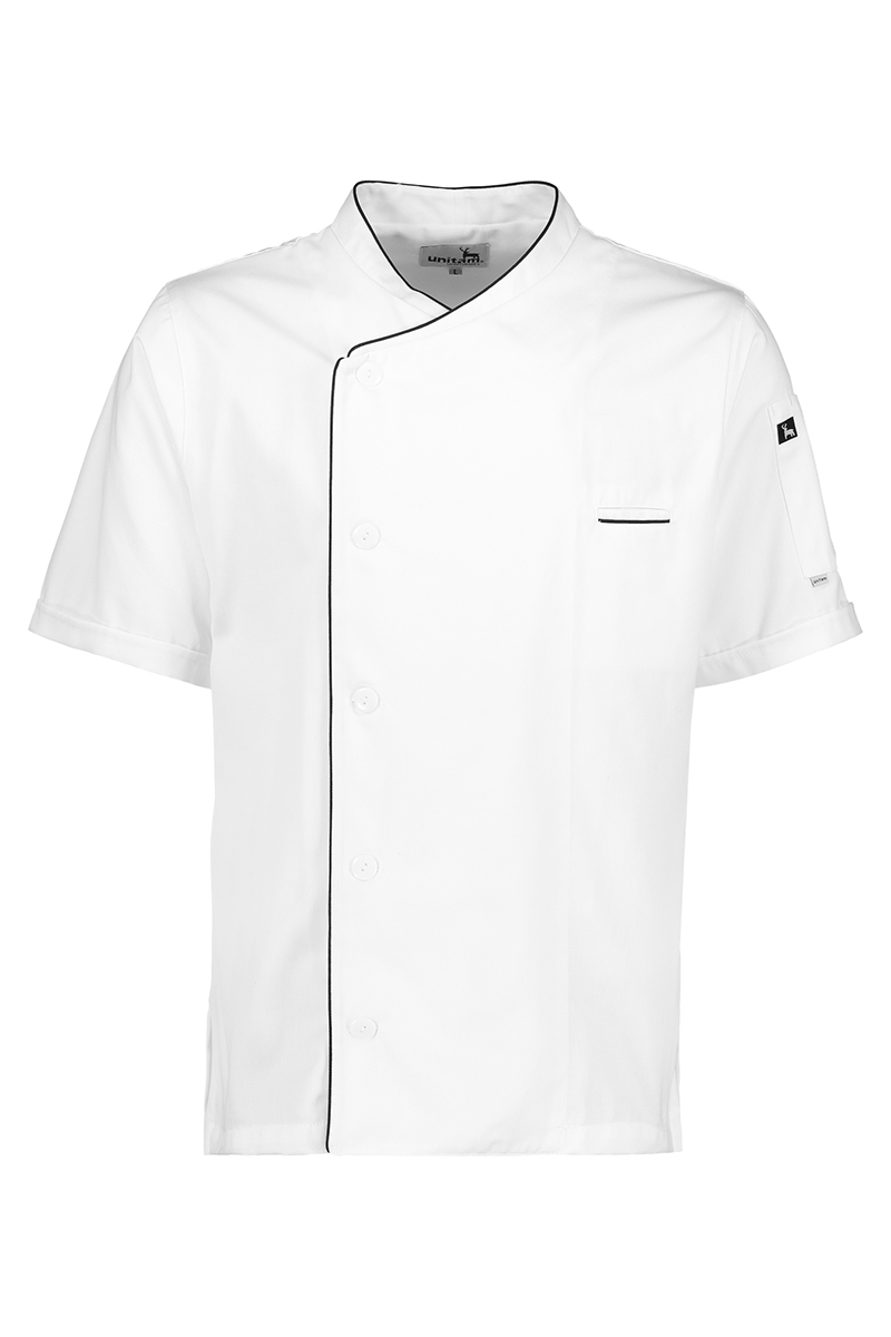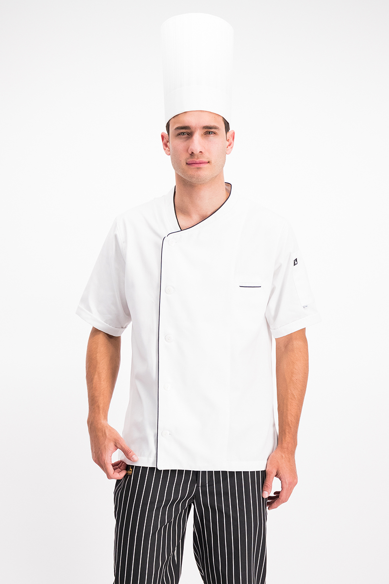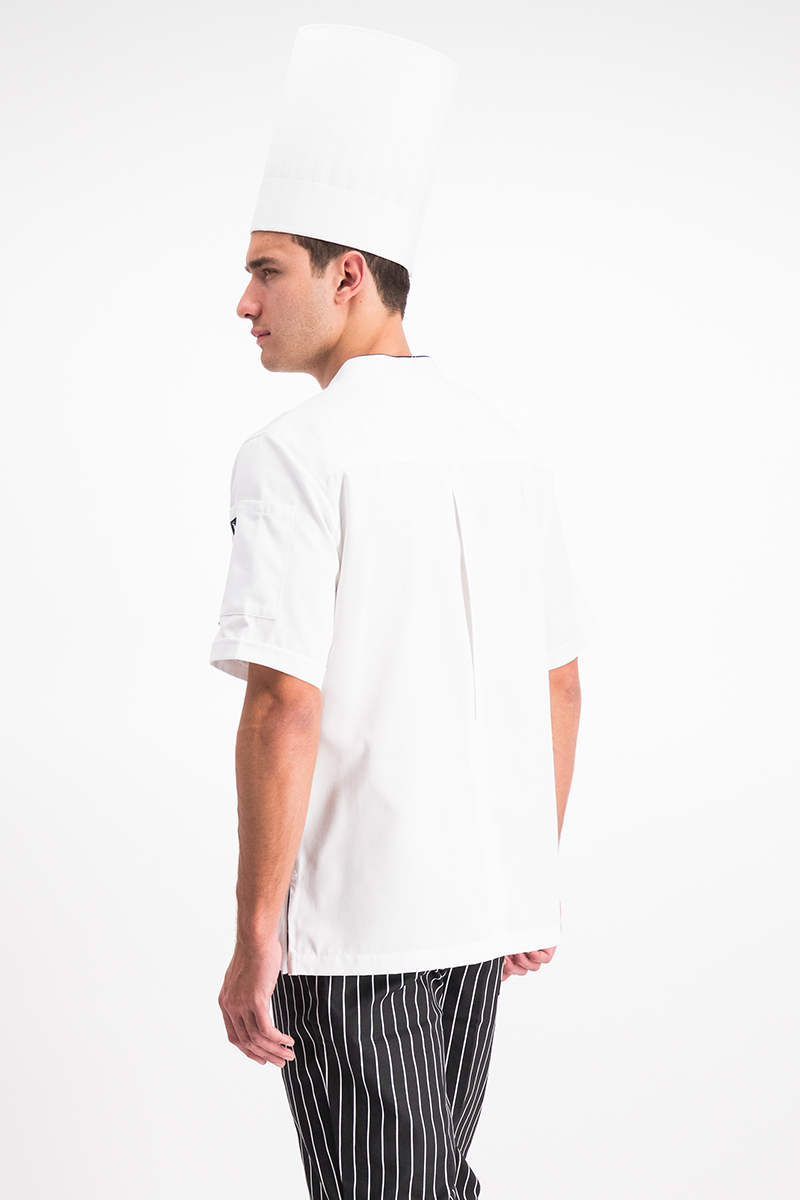 Filipina de chef con vivos añade un toque estético, elegante, resalta el diseño y proporciona un contraste visual agradable, manga corta que permite mayor libertad de movimiento y comodidad.