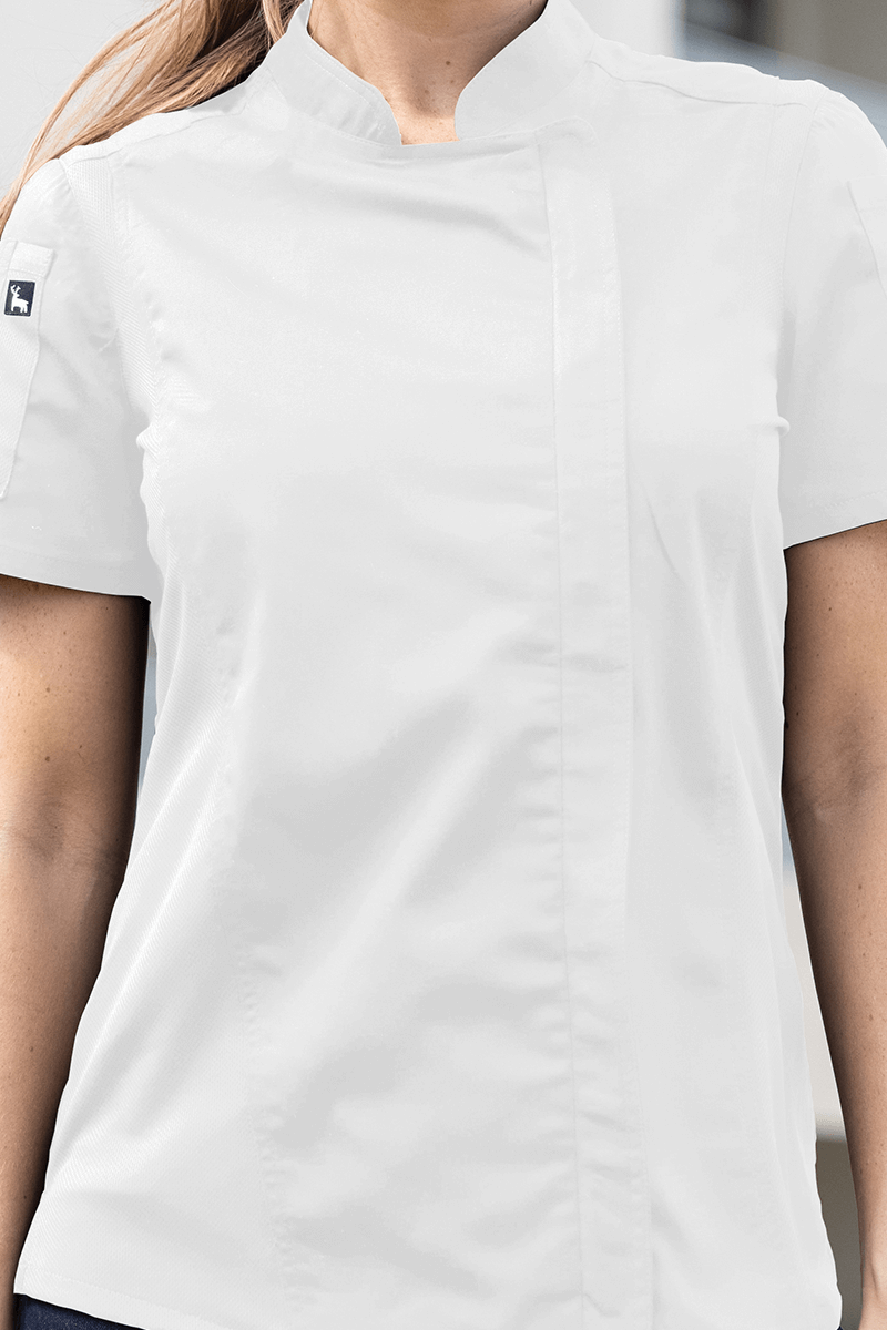 La Filipina Chef Paris para Restaurante de dama, combina elegancia y funcionalidad en un diseño pensado para el ritmo exigente de las cocinas profesionales. Su corte favorece la figura femenina sin sacrificar comodidad ni libertad de movimiento. Ideal para chefs, cocineras y personal femenino en hoteles y restaurantes que buscan un uniforme profesional y sofisticado.