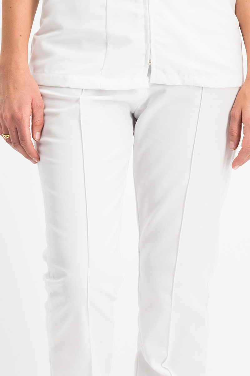 Los pantalones blancos para enfermeras son esenciales en entornos clínicos, ofrecen un look profesional y elegante cuenta con elástico para mejor ajuste al cuerpo.